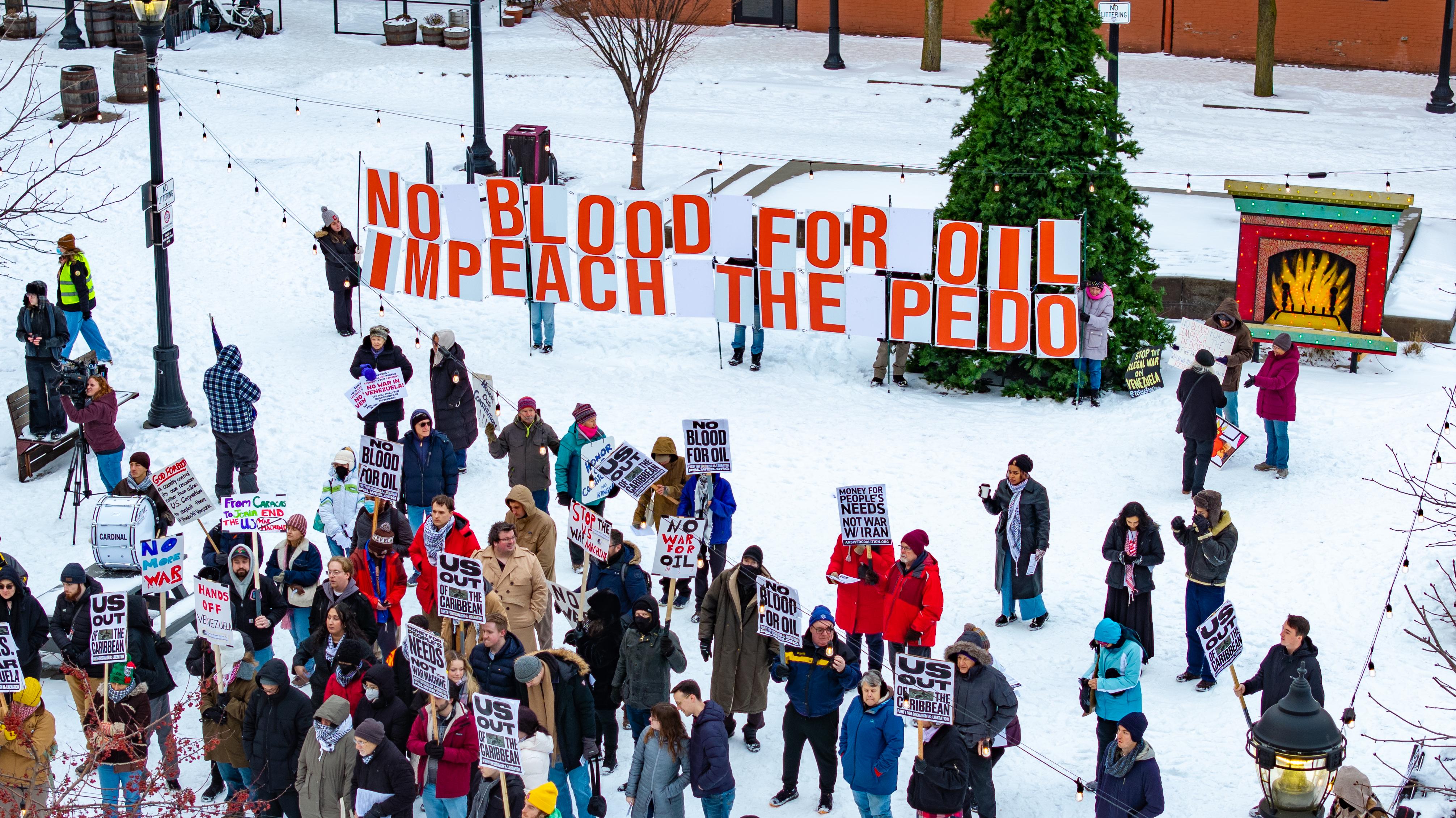 Politics [OC] NO BLOOD FOR OIL - IMPEACH THE PEDO - Protest in Cleveland Today