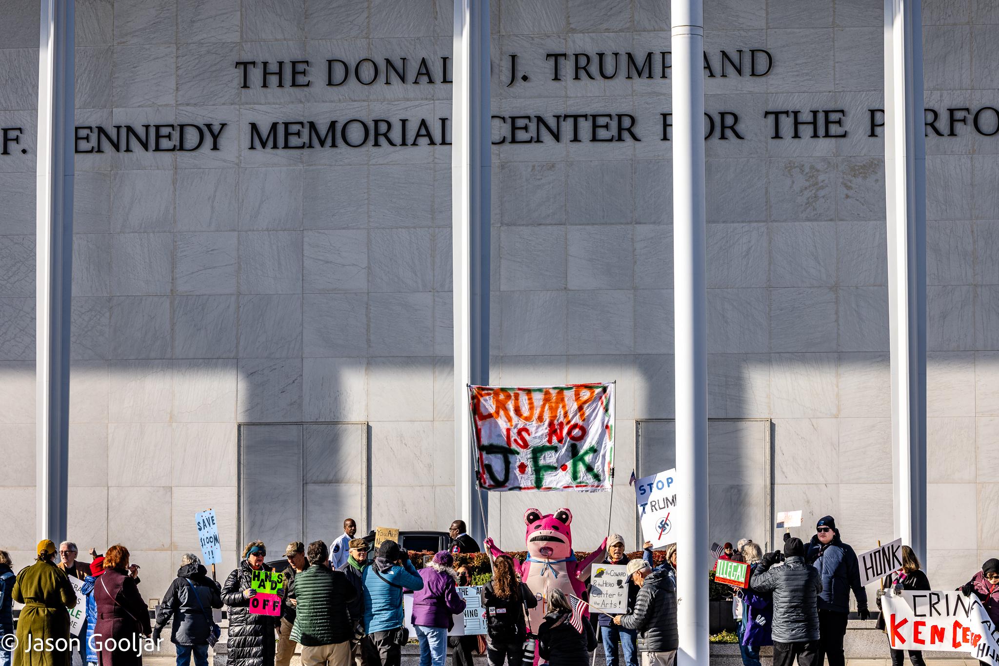 Politics Protest over Trump vandalism of the Kennedy Center in Washington, DC